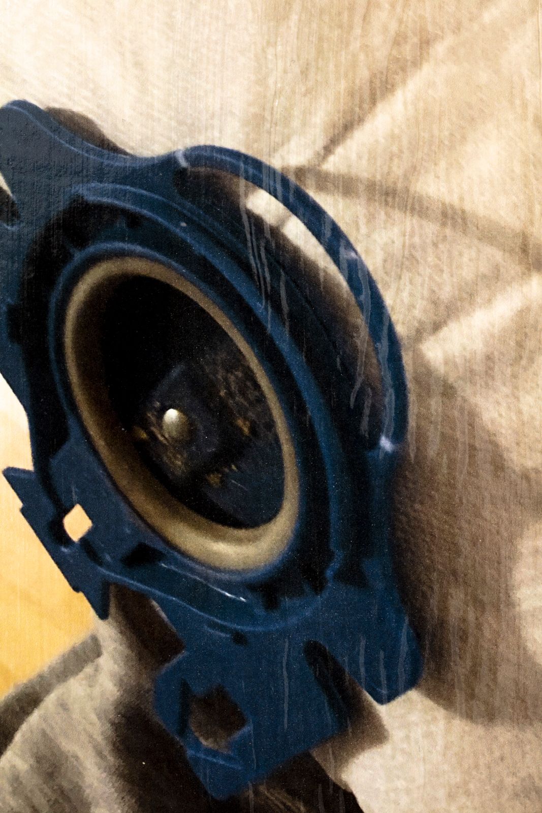 Tył lampy, 2023, digital print mounted on HDF board, varnish, wooden strips, glue and staples, 80 × 60 cm